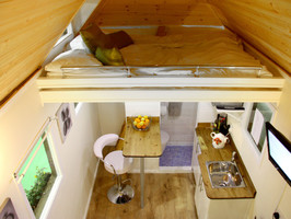 C'est une mini maison mobile et écologique en ossature bois qui respectent les normes RT 2012, le tout montée sur une remorque.